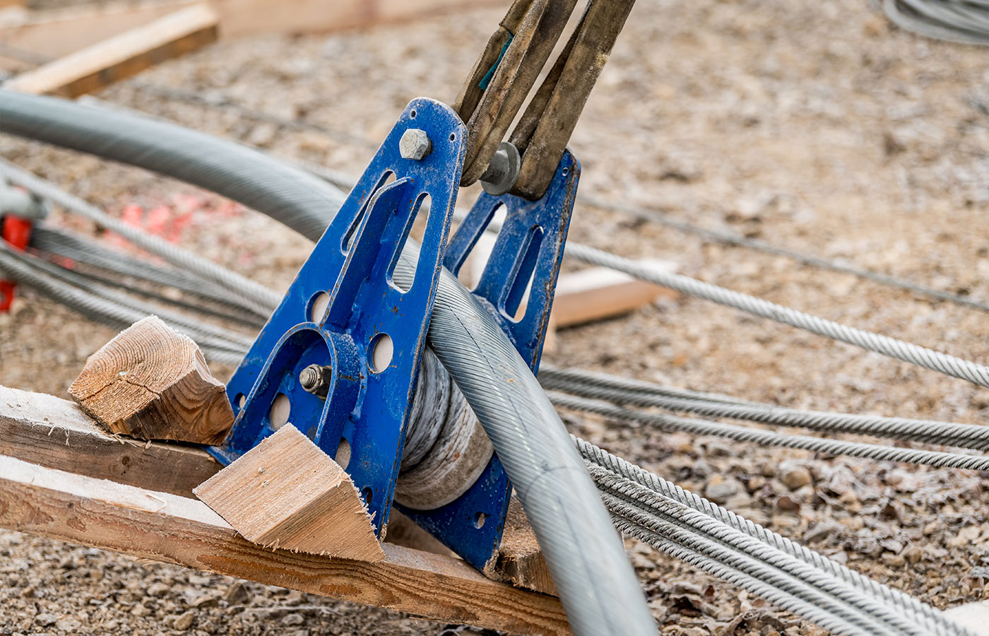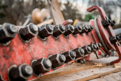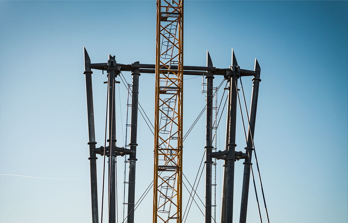 Nahaufnahme mehrerer Metallstangen, die in einem Gerüst angeordnet sind